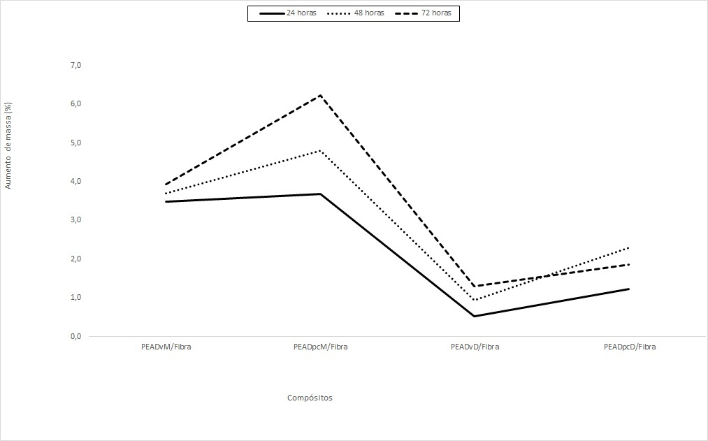 - Figura 1 Absorção de água dos compósitos de PEADv e do PEADpc (Português (Brasil))
