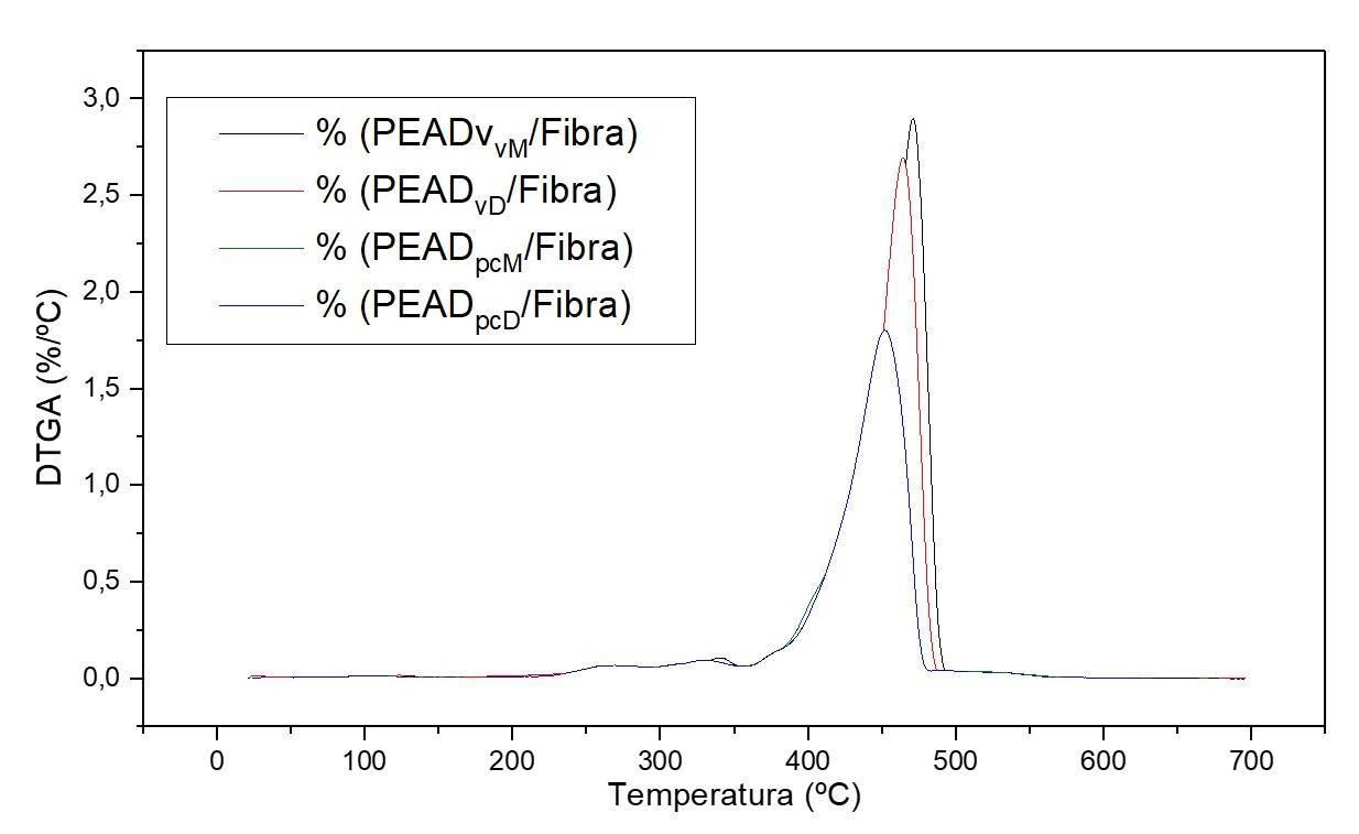 - Figura 3 Curvas de DTGA dos compósitos de PEADv e do PEADpc (Português (Brasil))