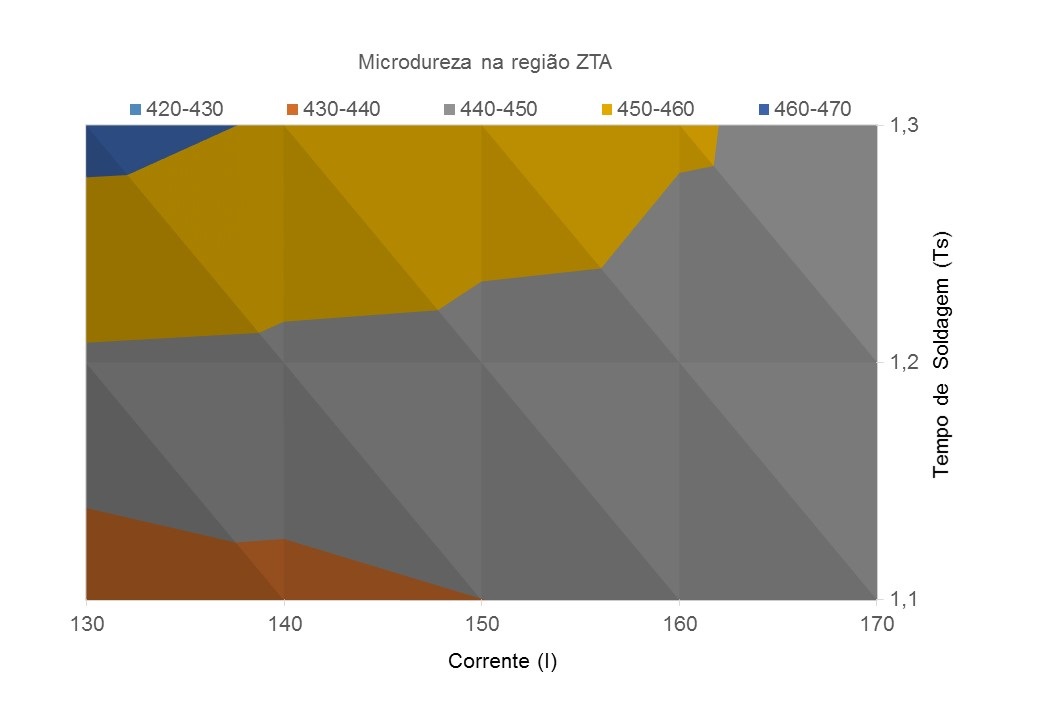 A soldagem a gás inerte de tungstênio (TIG) é um processo de soldagem a arco elétrico entre um eletrodo não consumível de tungstênio e a peça de fusão com proteção gasosa. Atualmente, este processo é amplamente utilizado em metais e ligas de espessura 0,2 mm e 8 mm. Neste trabalho foi avaliada a soldagem autógena realizada pelo processo automático TIG em cintas metálicas de aço médio carbono utilizadas para embalar barras e feixes de mais de 1 tonelada. Foi utilizado o planejamento fatorial de experimentos para determinar os fatores que influenciam nos ensaios de tração e na microdureza e que qualificam o desempenho das peças soldadas. O modelo de regressão obtido para a carga de ruptura demostrou que o tempo de soldagem é a variável de maior significância estatística, seguida pela corrente. No modelo da microdureza é possível constatar que a variável de maior significância estatística é a variável de blocagem Região soldada (R) seguida do Tempo de solda (Ts) e a Corrente (I).