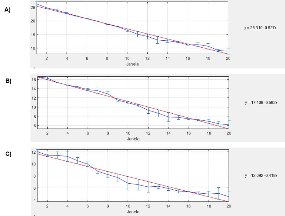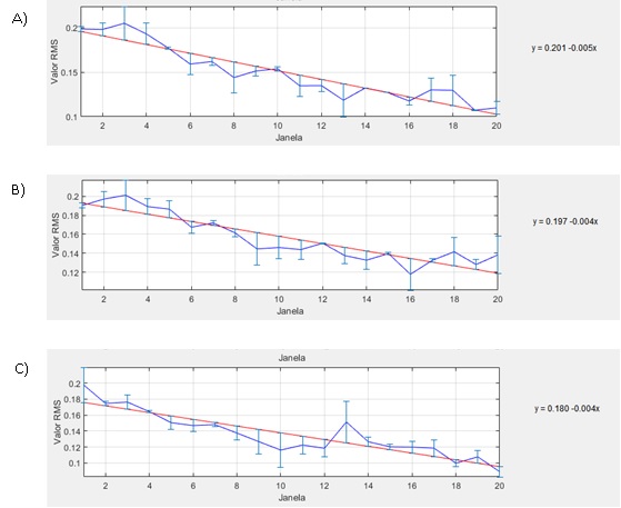 - Figura 3 - Regressão linear dos valores de Root Mean Square obtidos pelo Software ELEDA