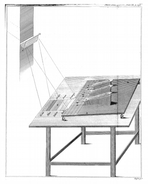 - Ilustração do aparato usado por W. Herschel quando estudava a temperatura das cores.